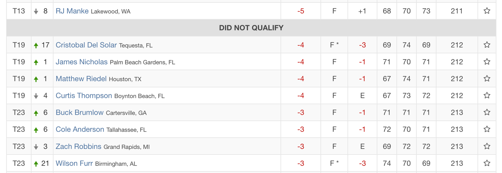 Because a significant portion of the field did not finish the final round, the tournament followed standard procedure. All 4th-round scores were voided, and the final qualifying positions were reset on the leaderboard after 54 holes (end of Round 3). GolfNewsRI+1
